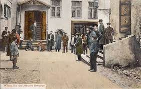Here we will unpack where this stereotype comes from. The Jewish community was established in Lithuania in the 14th century, with the invitation issued to German Jews by the king. In the late 16th century, the community built the Great Synagogue in grand Italian Renaissance style, with a soaring interior made possible by a floor dug below ground level, complying with the rule that the building not stand taller than the Catholic Church. In 1812, after visiting the Great Synagogue on his march to Moscow, Napoleon dubbed Vilna "the Jerusalem of the North." The name stuck. The Great Synagogue's gated courtyard with its study houses (kloyzes) became a visual metonym for the city's Jewish presence and identity, as in the photo of the book's cover (above).